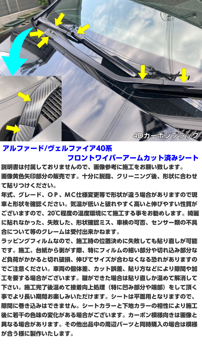 【N-STYLE】アルファード/ヴェルファイア40系フロントワイパーアームカット済みシート カラー選択 カスタムパーツ その6-10