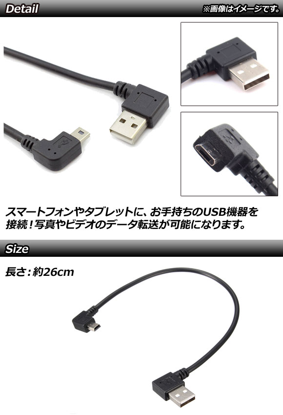 AP MicroUSB変換ケーブル ブラック MicroUSB(オス)-USB2.0(オス) L字 AP-UJ0522