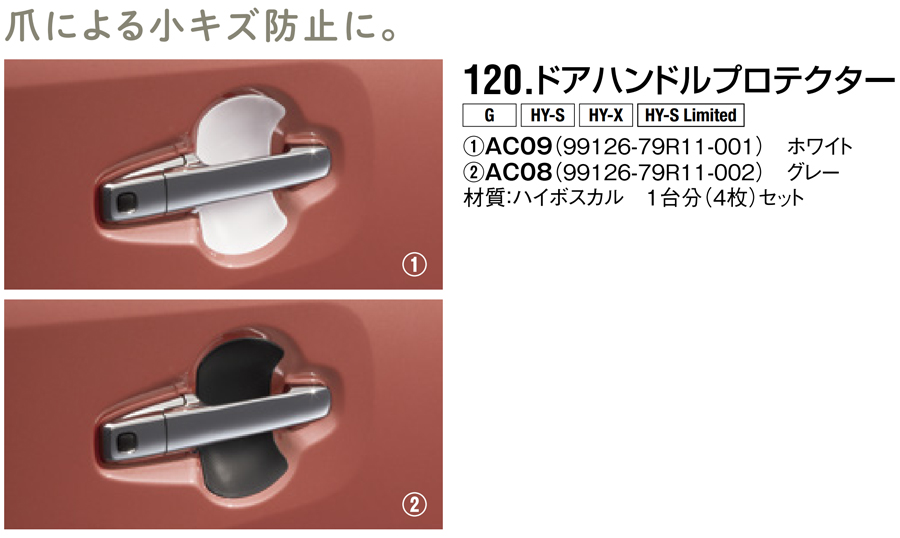 商品説明 | キズ防止だけでなくドアハンドル回りのドレスアップとしても最適 |