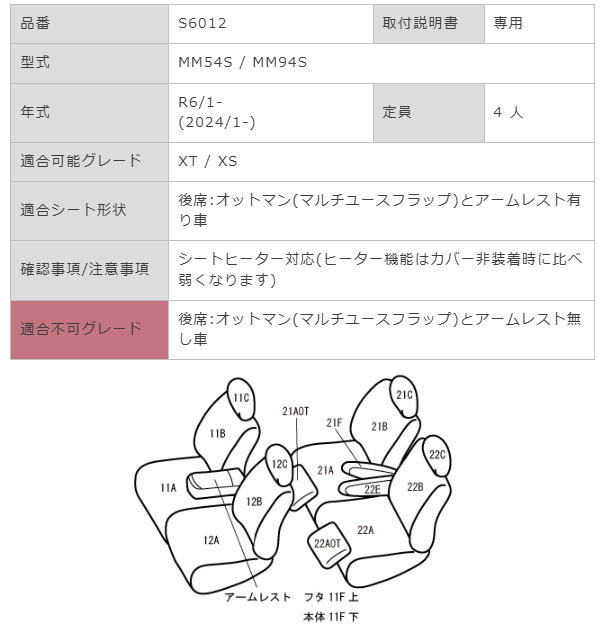 Original Japanese name: | S6012【フレアワゴンカスタムスタイル MM54S / MM94S】R6/1- ベレッツァナチュラルシートカバー |