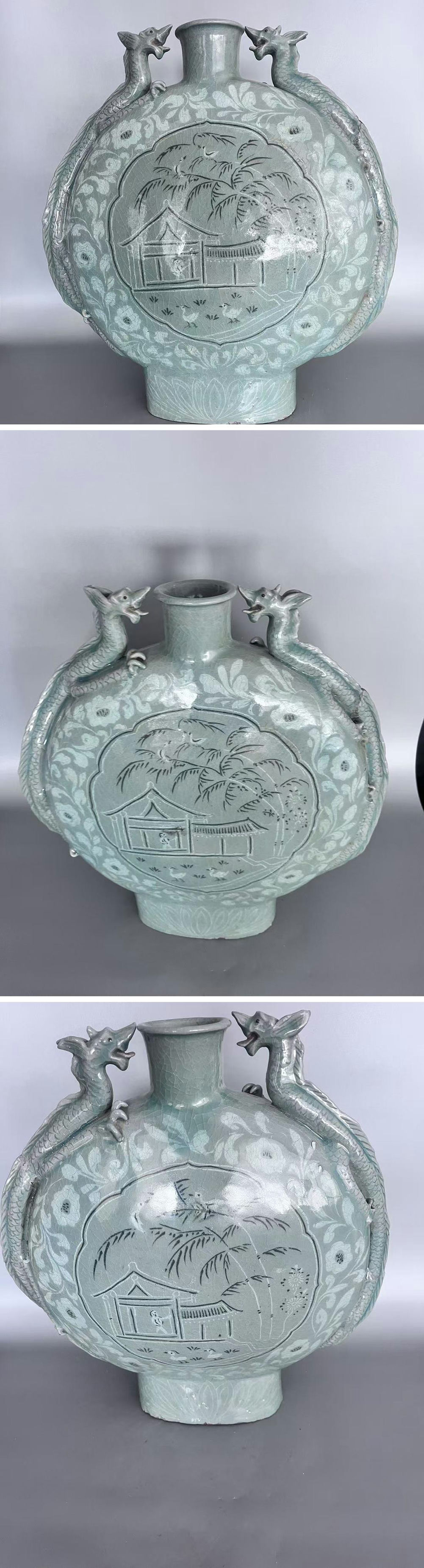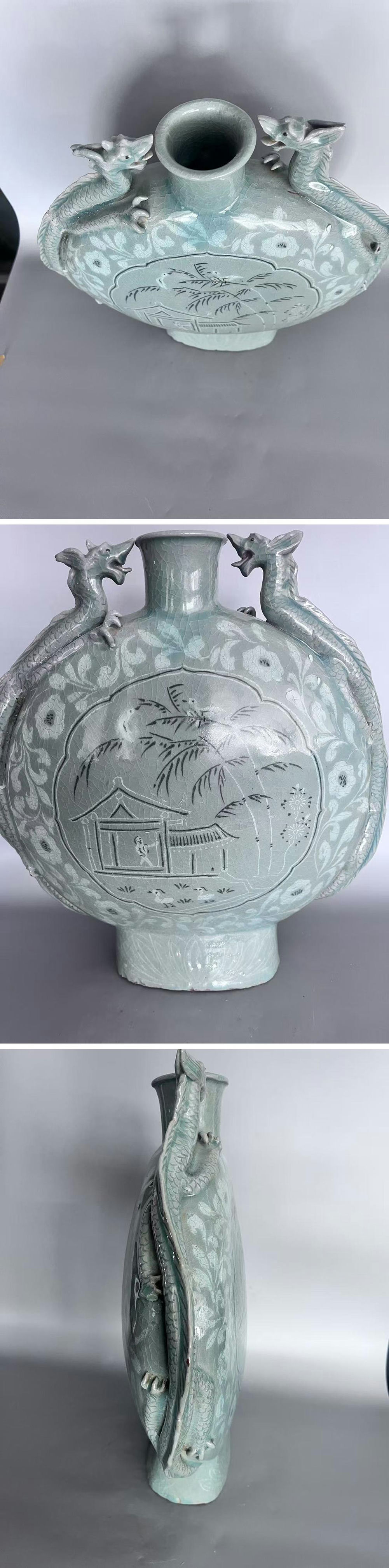Original Japanese name: | ▼渡鶴羽▼R714コレクター放出 朝鮮古美術 高麗磁 李朝時代 古高麗 高麗青磁抱月瓶 |