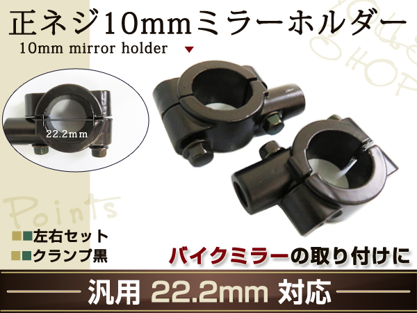 新品 M10 正ネジ クランプ ミラー ホルダー 22.2mm 2個 ブラック ステー バイク カスタム パーツ ATV モンキー マウント アダプター