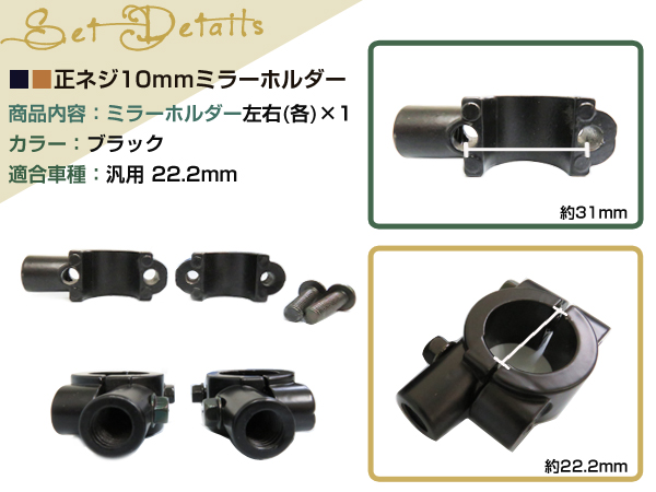 Original Japanese name: | 新品 M10 正ネジ クランプ ミラー ホルダー 22.2mm 2個 ブラック ステー バイク カスタム パーツ ATV モンキー マウント アダプター |