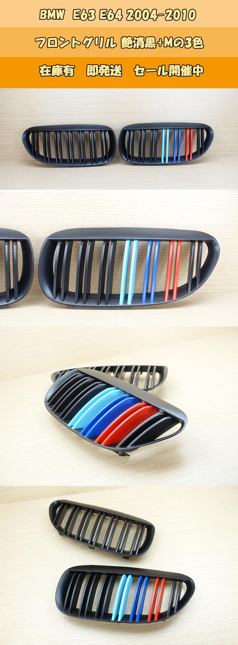 交換用左右 即納対応 取付簡単 BMW E63 E64 M6 M LOOK フロントグリル 艶消黒+Mの3色カラー ABS 2004-2010