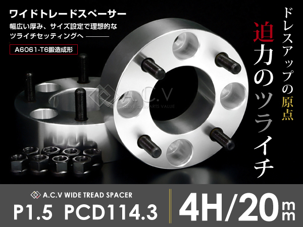 【送料無料】 ワイドトレッドスペーサー 4穴 PCD114.3 M12-P1.5 20mm 2枚 ホイール スペーサー ワイトレ ナット ワイドスペーサー タイヤ