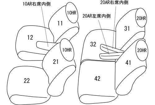 シートパターン | ヘッドレスト総数:4 1列目肘掛:1 2列目肘掛:2 3列目肘掛:- サイドエアバッグ:○ |