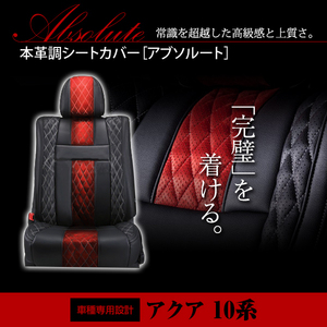 PVC レザー シートカバー アクア NHP10 H23/12~H29/5 5人乗り用 アブソルート レッド×ブラック ホワイトステッチ キルティング