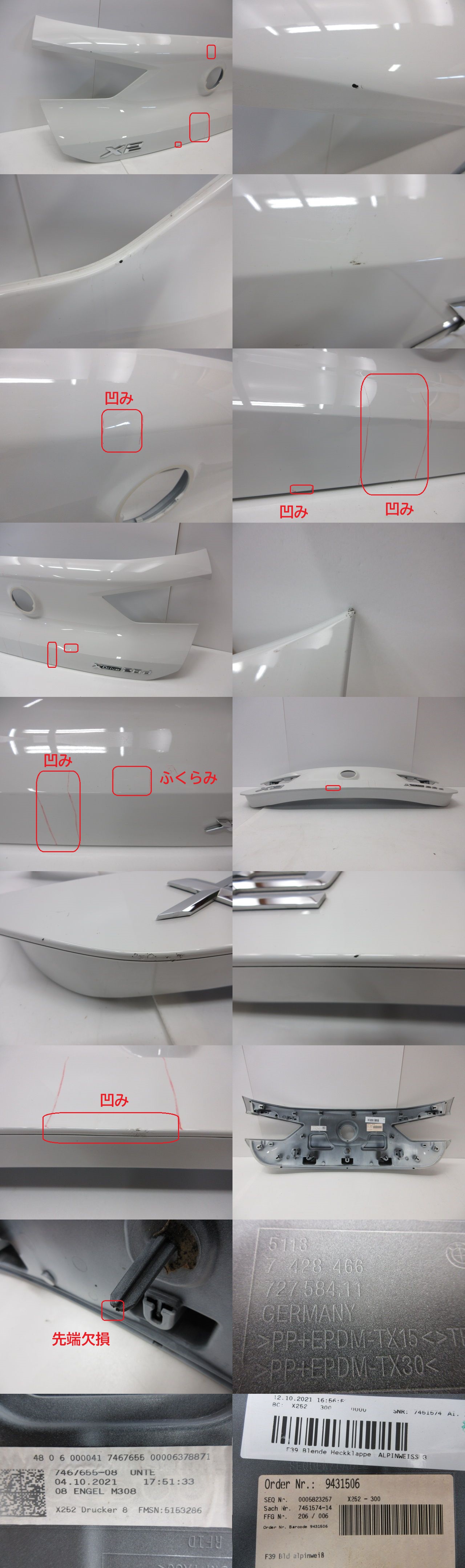 【即決有】 BMW X2 xDrive F39 純正 バックドア リア パネル アルピンホワイトIII 51137428466 (B040907)