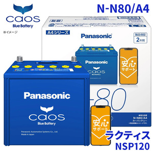 ラクティス NSP120 バッテリー N-N80/A4 パナソニック caos カオス ブルーバッテリー 安心サポート アイドリングストップ車対応 送
