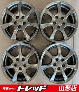 山形店 中古 アルミホイール4本セット LEBEN 15インチ 6.0J 5H100 インセット+40 ダークグレー カローラツーリング プリウス 等