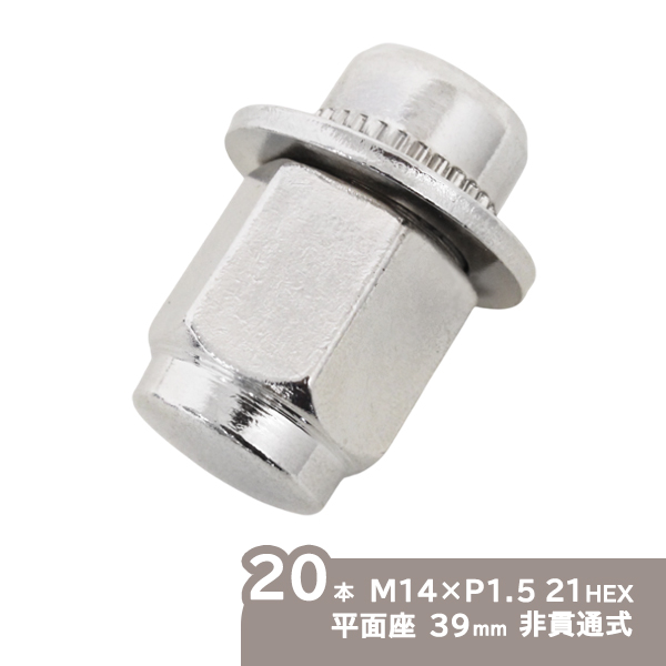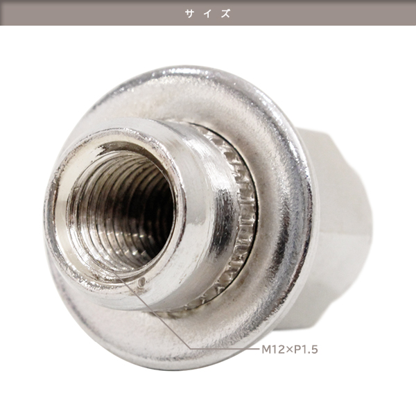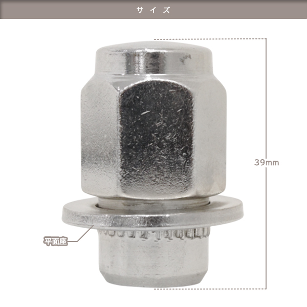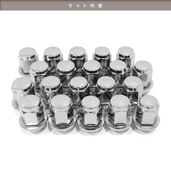 Original Japanese name: | ю トヨタ純正ホイール用 ホイールナット [ M12×P1.5 21HEX 平面座 全長約39mm メッキ ] [ 20個 ] 袋ナット ストレートナット スチール |