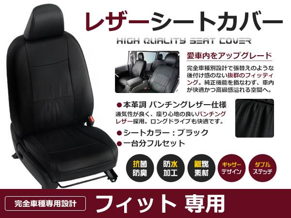 フィット GE8 GE9 5人 シートカバー ブラック パンチング 一台分 フルセット H22/10~H24/5 内装 PVC レザー 座席 純正交換用