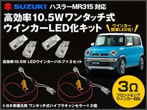 MR31S ハスラー ウインカーランプ 高効率 10.5W ワンタッチ式 ウインカーLED化キット T20 アンバー 4個 ハイフラキャンセラー2個セ