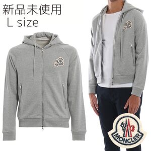 【新品未使用タグ付き】MONCLER Double badge logo hoodie ジップアップ パーカー Grey color メンズ Lサイズ