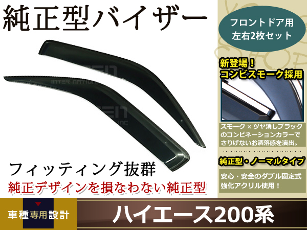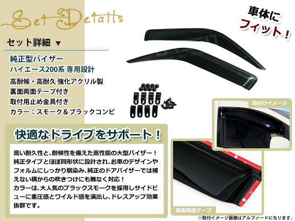 ハイエース200系 スモーク サイド ドア バイザー W固定 止め具付