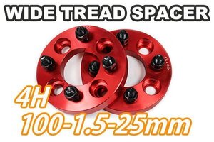 イスト 60系 ワイトレ 4H 2枚組 PCD100-1.5 25mm ワイドトレッドスペーサー (赤)