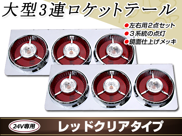 ヤンキーテール 丸型ロケット 3連 トラックテール テールランプ レッド/クリア 大型車 24V ダンプ 2t 4t 10t ハロゲン ブレーキ ウインカー