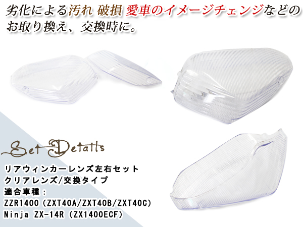 ZZR1400 ZX-14R リア クリア ウィンカー レンズ ZXT40 ZX1400