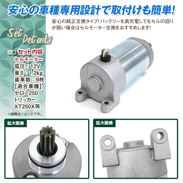 ヤマハ セルモーター セロー250 トリッカー XT250X スターター モーター バイク オートバイ エンジン 交換 補修 パーツ カスタム