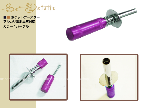 Original Japanese name: | 小型 軽量 アルカリ電池用 ポケットブースター パープル 単三乾電池が使用できるポケットブースター ポケブー プラグブースター |