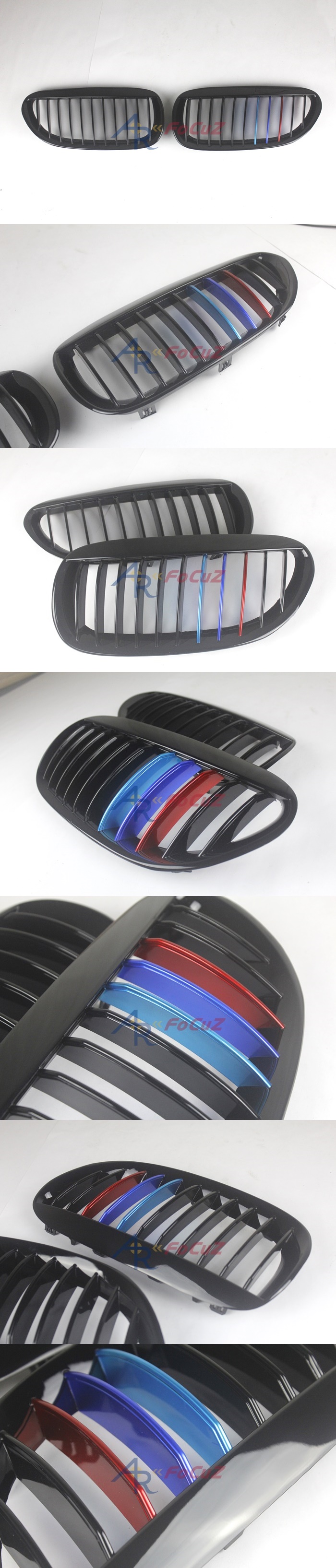 BMW E63 E64専用 ABS製 フロントグリル セット 光沢黒+金属風Mの3色 |