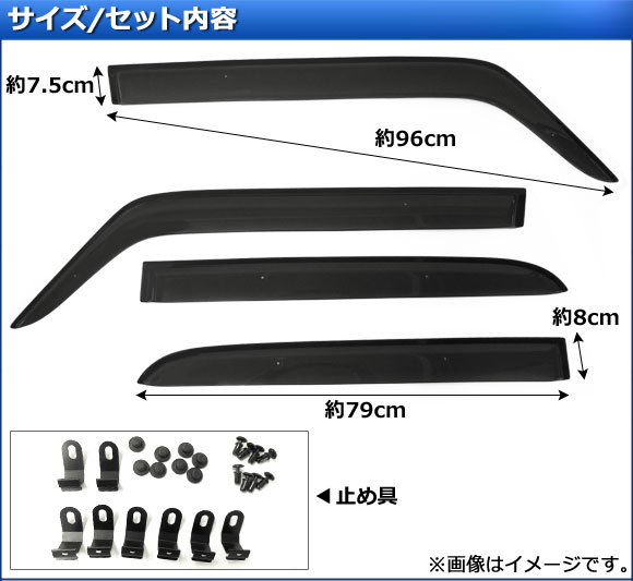 Original Japanese name: | サイドバイザー スズキ アルトラパン HE33S 2015年06月~ APSVC242 入数:1セット(4枚) |
