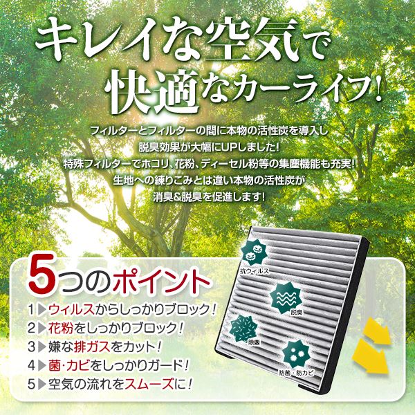 本商品は消臭効果が非常に強い活性炭入りとなり、快適な車内環境を創造します。