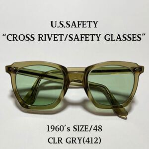 U.S.SAFETY クロスリベット 48 サングラス ビンテージ メガネ 眼鏡 クロスヒンジ ホーンリム セーフティグラス 古着 USS ダイヤリベ