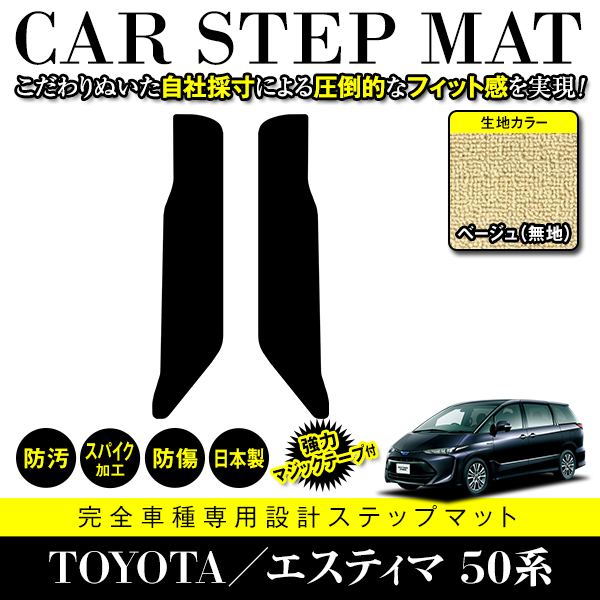 【日本製】トヨタ エスティマ 50系 ステップ マット フロアマット カーマット 後部座席用 左右 2P セット 汚れ防止 ベージュ 無地