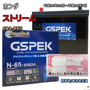バッテリー GSPEK W-N65/PL 廃バッテリー回収サービス付 ホンダ ストリーム CBA-RN5 平成16年10月~平成18年7月 対応 N-