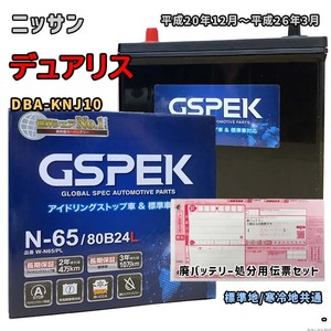 バッテリー GSPEK W-N65/PL 廃バッテリー回収サービス付 ニッサン デュアリス DBA-KNJ10 平成20年12月~平成26年3月 対応