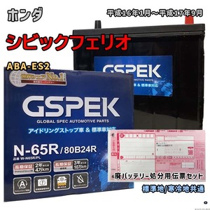 バッテリー GSPEK W-N65R/PL 廃バッテリー回収サービス付 ホンダ シビックフェリオ ABA-ES2 平成16年1月~平成17年9月 対応