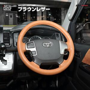 ハイエース 200系 4型-8型 2013(H25).11 - ステアリング ノーマルグリップ ブラウンレザー ハンドル 純正交換 カスタム ST15