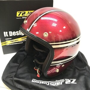 72JAM VNT-05 JOHNNY デザイナーズジェットヘルメット レッドシルバーフレークベースグロス仕上げ フリーサイズ バイク用品 ◇TA09