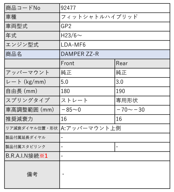 [BLITZ_ZZ-R]GP2 フィットシャトルハイブリッド(H23/6~)用ブリッツ車高調[No:92477]