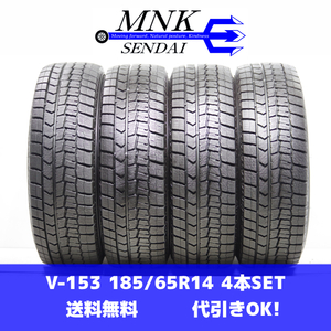 V-153(送料無料/代引きOK)ランクS 中古 美品 185/65R14 ダンロップ ウインターマックスWM02 2022年 9.5~9.8分山 ス