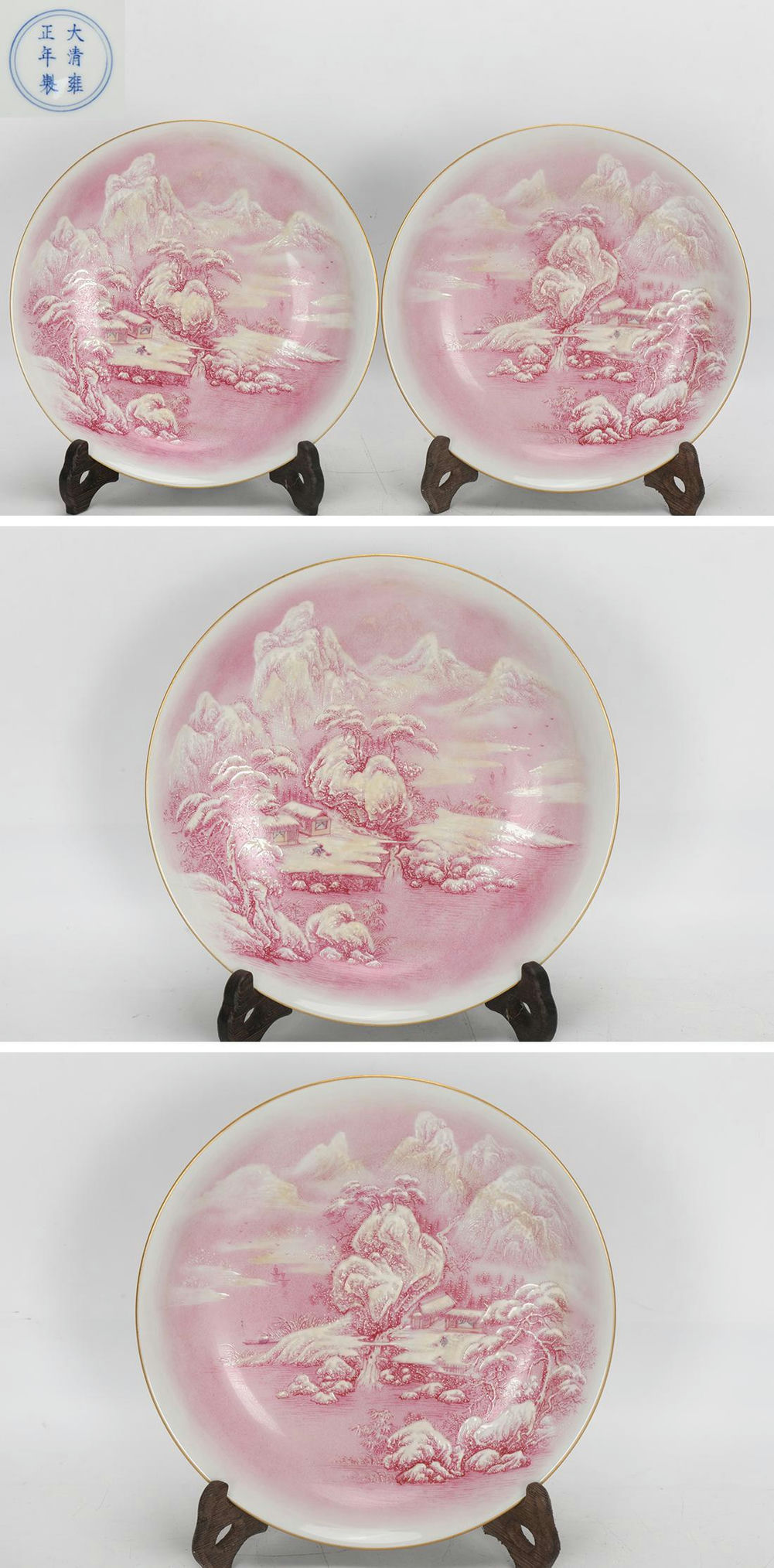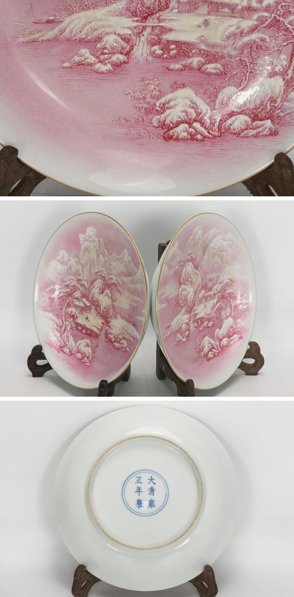 ■観心・時代旧蔵■G8917清雍正 琺瑯彩雪景山水盤一対・古陶磁器 ・珍品旧蔵・古賞物・時代物