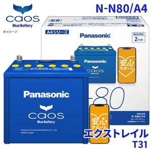 エクストレイル T31 バッテリー N-N80/A4 パナソニック caos カオス ブルーバッテリー 安心サポート アイドリングストップ車対応 送料