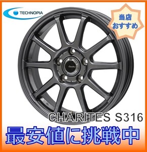 16インチ 5H114 6.5J+48 5穴 カリテス S316 ホイール 4本 マシングレー TECHNOPIA CHARITES S316 個人宅