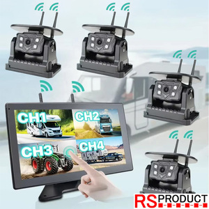 ドライブレコーダー 周囲モニター ソーラー充電カメラ 【2個セット】ワイヤレスカメラ 配線不要 夜間 10.1インチ SDカード対応!! DVR4ch