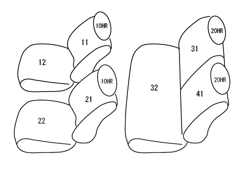 シートパターン | ヘッドレスト総数:4 1列目肘掛:0 2列目肘掛:0 3列目肘掛:- サイドエアバッグ:○ |