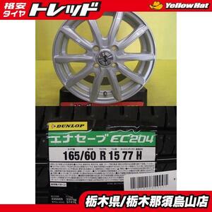 アクア スイフト お買い得 サマータイヤセット 中古 LCZ 15インチ 5.5J +45 4H 100 新品 DUNLOP ダンロップ ENASAV