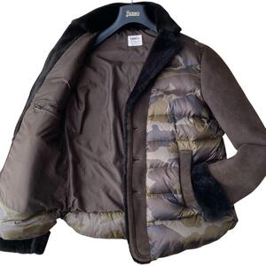 良品 50/XL EMMETI エンメティ TONI ハイブリッド ムートン 切替 ダウンジャケット ブルゾン ラムレザー 羊革 極暖 高級 イタリア