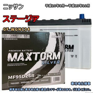 バッテリー MAXTORM MAX-MF95D26R ニッサン ステージア GF-WGNC34 平成10年8月~平成13年10月 4WD D26Rタイ