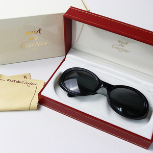 極美品 保管 廃盤 マスト ドゥ カルティエ must de Cartier トリニティ サングラス ブラック noir 53□20/黒 めがね【24