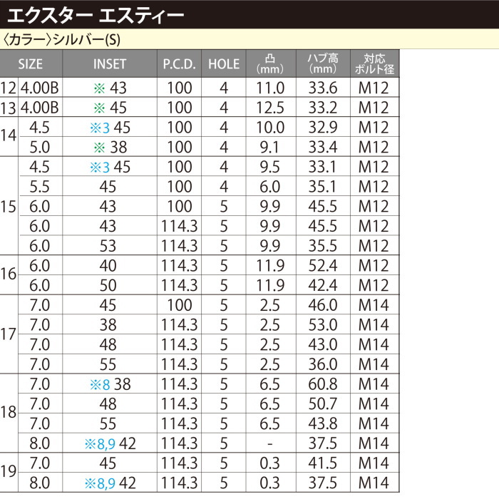 Original Japanese name: | ホイール4本セット 15インチ 6J+43 5H-100 Exsteer ST シルバー |