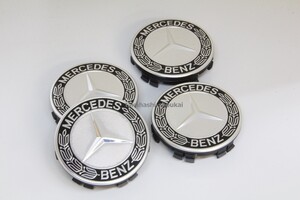 ブラック×クロームローレルリース黒ホイールセンターキャップ4個セットW257 C257 W218 W219 R231 R230 C199 C197 C