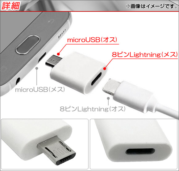 端子:microUSB(オス端子)-8ピンiPhone/iPad/iPod用(メス端子)