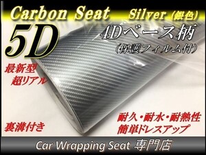 5Dカーボンシート シルバー 銀色 4D柄 ベース 縦x横 152cmx500cm スキージ付き SHA06 外装 内装 耐熱 耐水 伸縮 裏溝付 D