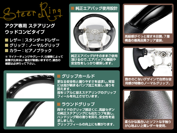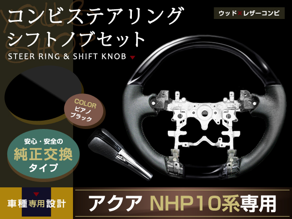 アクア NHP10系 ステアリング シフトノブ ピアノブラック レザー
